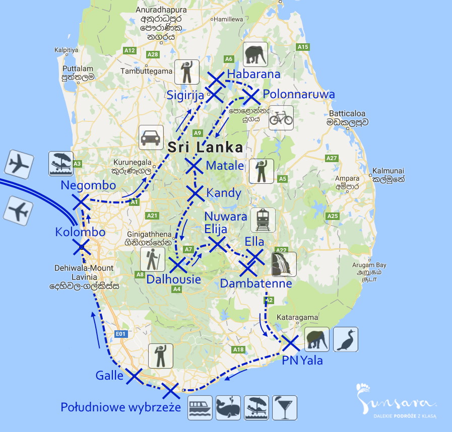 - Nietuzinkowy, autorski program. Szeroki wachlarz atrakcji: od zwiedzania zabytków, poznawania kultury kraju i jego mieszkańców, obcowania ze słoniami w ich naturalnym środowisku, po zdobywanie lankijskich szczytów i spacery po herbacianych polach. Spróbujemy lokalnych przysmaków i owoców, pojedziemy pociągiem z miejscowymi, podziwiając przepiękne widoki oraz skorzystamy z uroku lankijskich plaż.